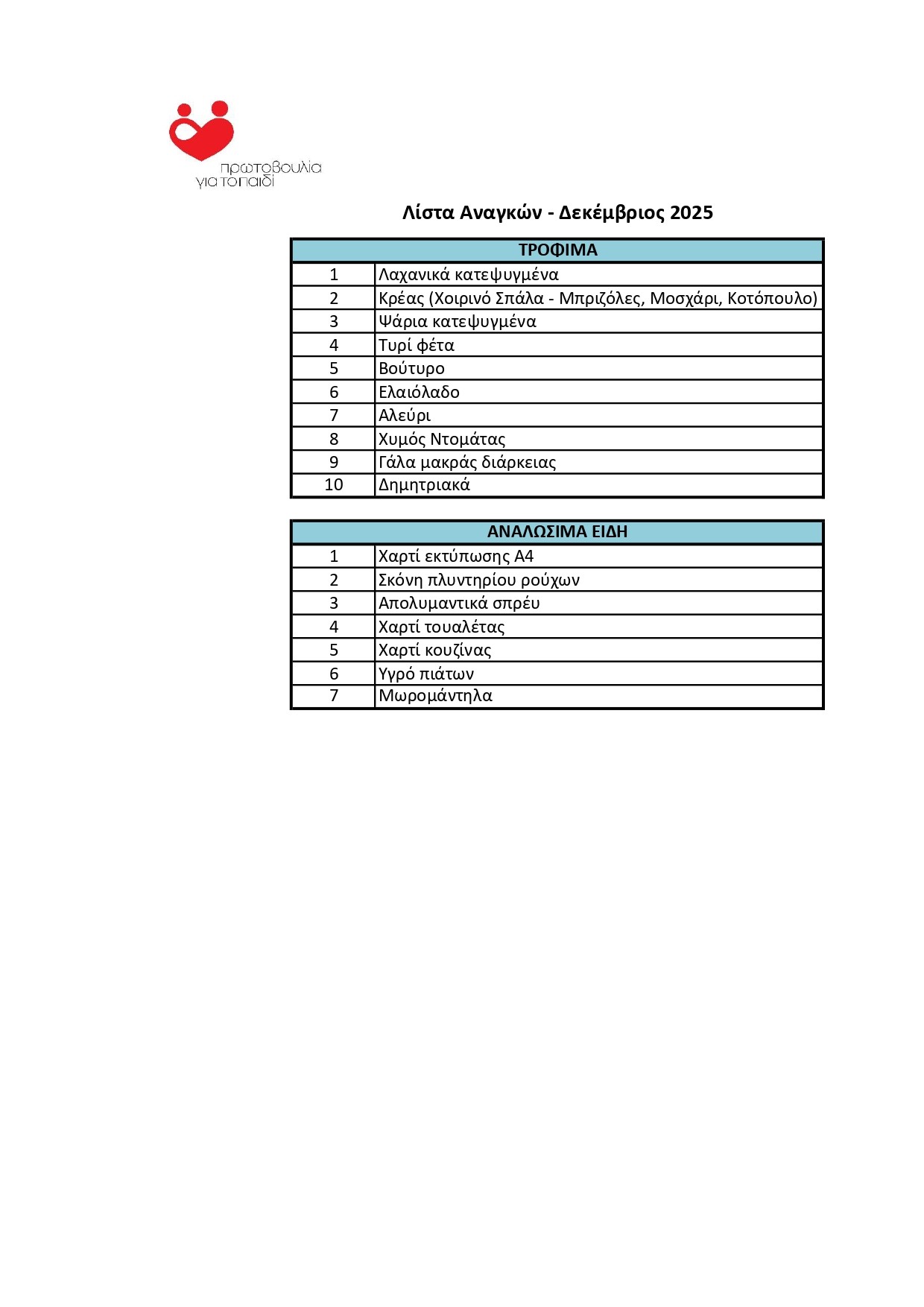 Μπορείτε να μας βοηθήσετε παρέχοντας δωρεάν είδη πρώτης ανάγκης για τη λειτουργία των Σπιτιών μας, όπως τροφίμων, σχολικών εφοδίων, ειδών ατομικής υγιεινής, ειδών σπιτιού και γραφείου κλπ.